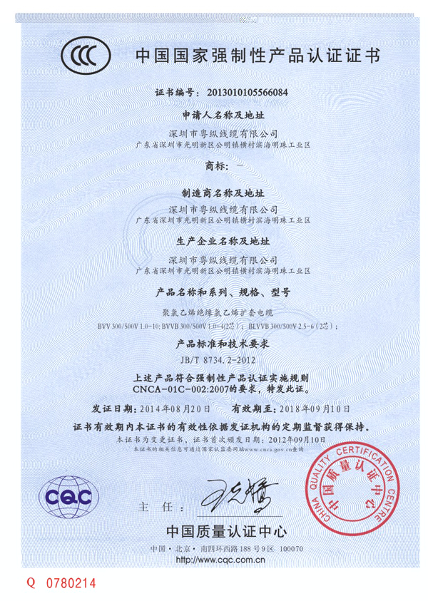 中国国家强制性产品认证证书1