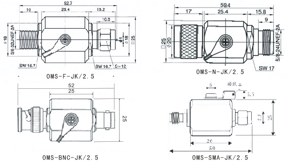 產(chǎn)品型號(hào) | OMS-SMA-JK/2.5 | OMS-N-JK/2.5 | OMS-TNC-JK/2.5 | OMS-F-JK/2.5 | |
