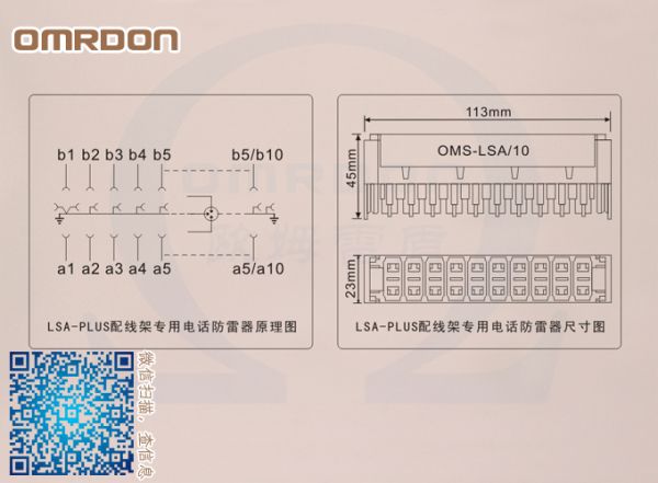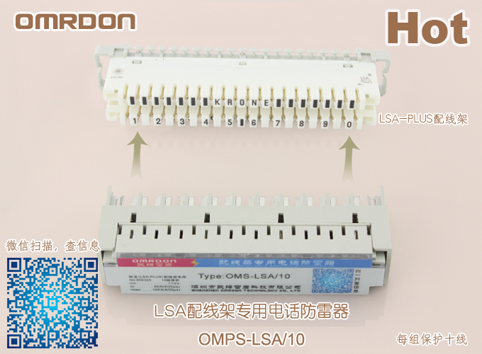 歐姆雷盾(OMRDON)OMS-LSA/10配線架專用電話防雷器主要用于通信系統(tǒng)程控電話交換機(jī)內(nèi)外線、集團(tuán)電話等設(shè)備提供線/線間及線/地間的浪涌過電壓保護(hù),直接插入KRONE( 科龍)LSA-PLUS配線架上,每組10線保護(hù);特別適用于模擬電話交換和ISDN網(wǎng)絡(luò)系統(tǒng)。應(yīng)用于用于雷擊區(qū)域LPZ0- LPZ1分區(qū)界面。