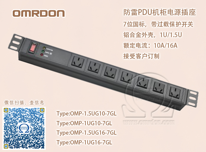 型號:OMP-1.5UG10-7GL | 防雷PDU機柜國標(biāo)電源插座 |