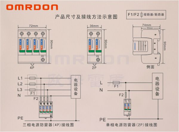 歐姆雷盾(OMRDON)二級電涌保護(hù)器(Surge Protection Device,簡稱SPD)(又稱電源防雷器、電源避雷器、浪涌保護(hù)器、過壓保護(hù)器),適用于交流380V(50Hz/60Hz)及以下的TN-S、TN-C-S、TT、IT等供電系統(tǒng)因雷擊而產(chǎn)生的雷擊電磁脈沖(LEMP)保護(hù),用于雷擊區(qū)域的LPZ1區(qū)與LPZ2區(qū)交界處,其設(shè)計(jì)依據(jù)符合GB18802.1,IEC61643-1技術(shù)標(biāo)準(zhǔn)。