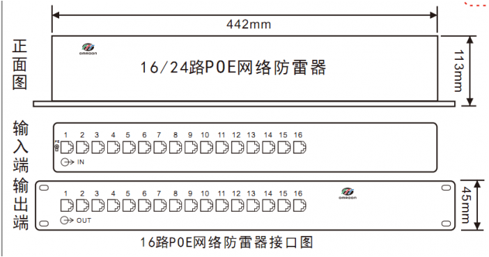 產品名稱 | 16路百兆POE網絡防雷器 | |||