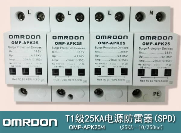 歐姆雷盾(OMRDON)25KAI級電涌保護器(Surge Protection Device,簡稱SPD)(又稱防雷器、避雷器、浪涌保護器、過壓保護器),具有高雷電通流能力,適用于交流380V(50Hz/60Hz)及以下的TN-S、TN-C-S、TT、IT等供電系統(tǒng)因雷擊而產(chǎn)生的電磁脈沖(EMP)保護,用于雷擊區(qū)域的LPZ OA或LPZB區(qū)與LPZ1區(qū)交界處.