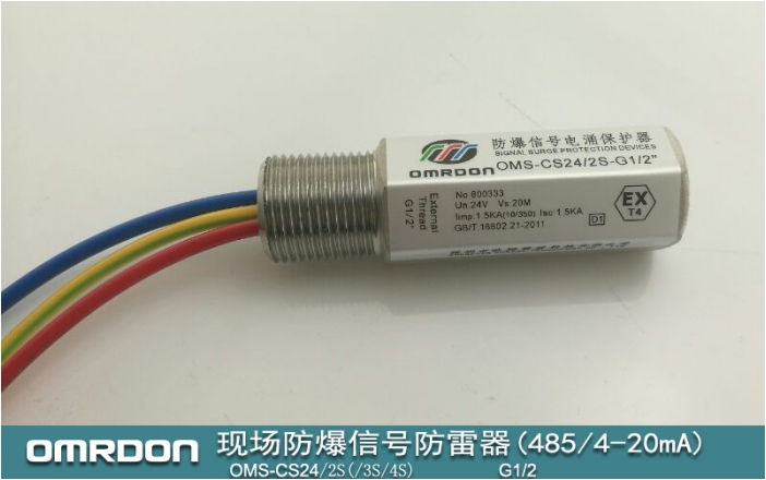 歐姆雷盾(omrdon)oms-cs24/2s(3s/4s)-G1/2系列防爆信號防雷器是用于石油,化工,煤礦等易爆危險區(qū)域中本質(zhì)安全電路和總線系統(tǒng)的電涌保護,如工業(yè)過程控制危險場所(現(xiàn)場)儀表,設備的粗細保護,安裝方式1/2螺絲