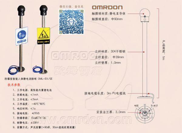 歐姆雷盾(omrdon)OML-EX/SE 智能型防爆(本安型)人體靜電消除球是適用于易燃、易爆及防靜電場所的人體靜電釋放裝置。其特點(diǎn)在于設(shè)計(jì)合理的人體靜電釋放電阻,合理有效控制人體靜電釋放,延長人體靜電釋放時(shí)間,降低瞬間人體靜電釋放能量,能夠使人體靜電安全釋放。同時(shí)能檢測人體與靜電觸摸球接觸是否可靠,聲光報(bào)警提示靜電消除是否完畢。